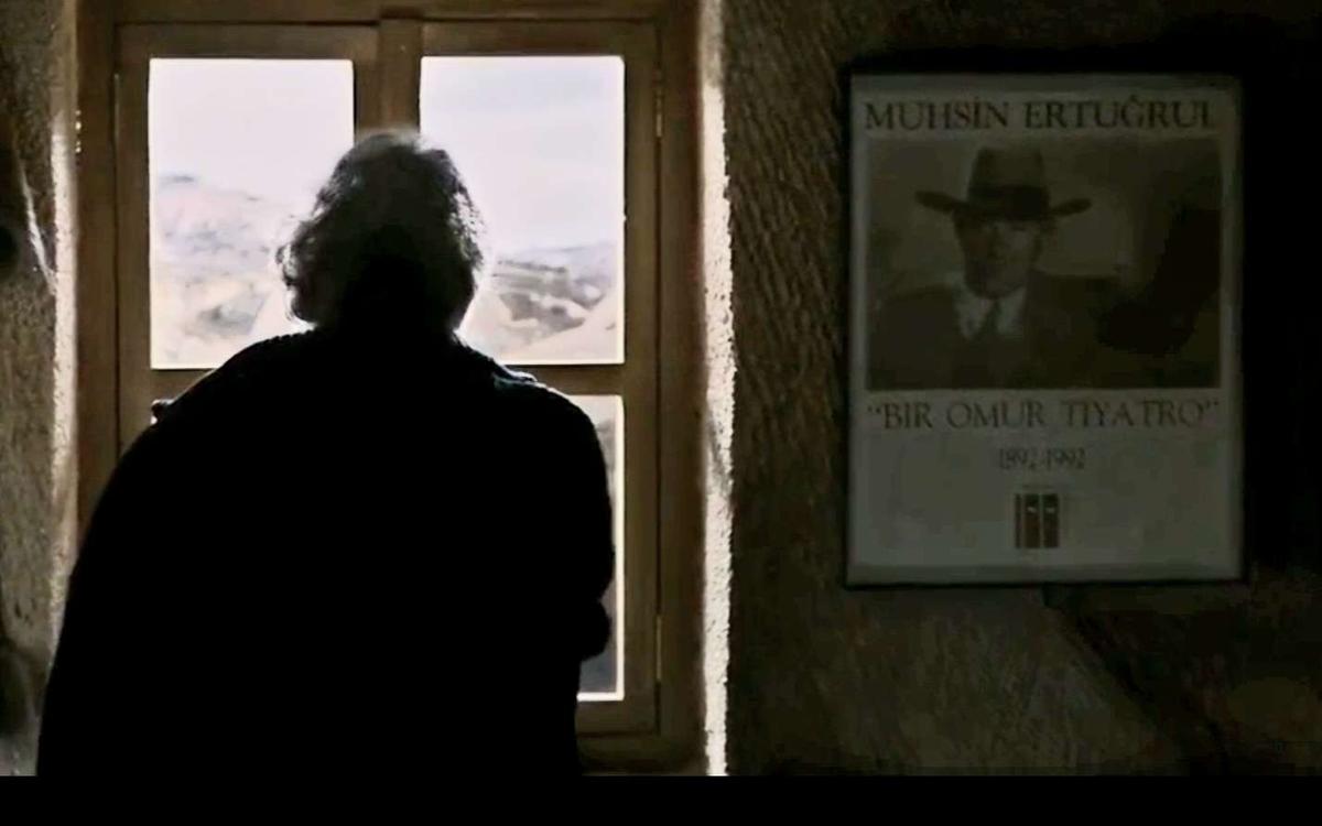 Yönetmenin filmin pek çok noktasına iliştirdiği görsel ayrıntılardan biri de Aydın’daki rol yapan tavrı açığa çıkaran Timur’un etkisiyle internetten at satın almanın yollarını incelerken dikkat çekmektedir. Pencerenin önünde duran Aydın’ın yanı başında bir afiş vardır. Afişte alt alta sadece şunlar yazılıdır: Muhsin Ertuğrul, Bir Ömür Tiyatro, 1892-1992.