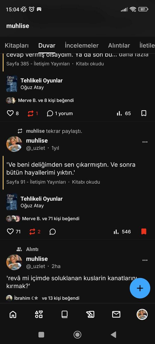 'beni bir gün unutacaksan, bir gün bırakıp gideceksen, boşuna yorma derdi; boş yere mağaramdan çıkarma beni. alışkanlıklarımı, özellikle yalnızlığa alışkanlığımı kaybettirme boşuna.' • tutunamayanlar